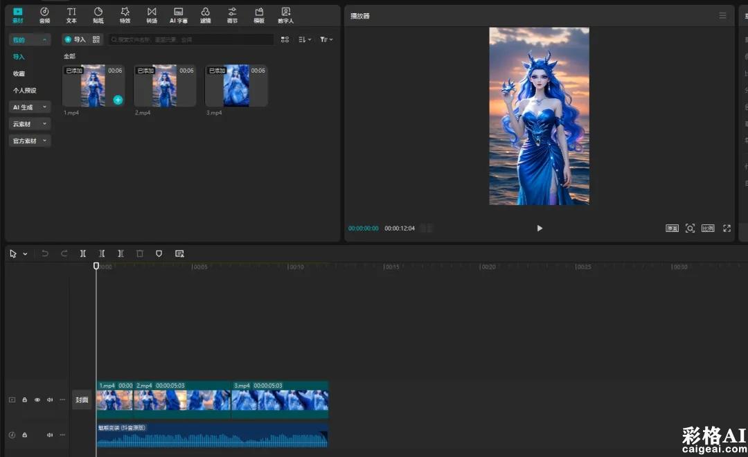 使用剪映剪辑多余镜头,配上字幕音乐。一个AI视频就完成了。